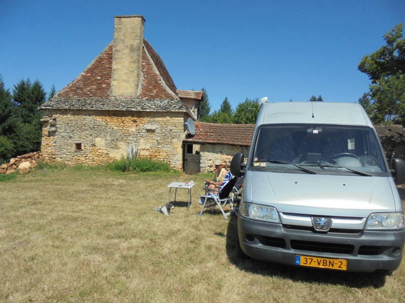 En zo gingen we overnachten nabij Le Bugue, in St. Alvere,bij FP boer. Aquitane Safran. N 44.94969 E0.84030. Ze vroegen of we elektra wilden...heel attent. Ook vuilnis konden we bij de boer kwijt. Heerlijke plek met geweldig mooi uitzicht!