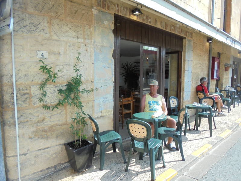 Na rit door verschillende bergdorpjes kwamen we bij Milandes aan...Prima geregeld, grote parking,met apart deel voor campers. Toen we bij de kassa kwamen werd ons verteld dat we niet met een hond naar binnen mochten. Dit ivm de roofvogelshow. Nu begrepen we dat wel ,maar we mochten ook niet op het terras van de brasserie plaatsnemen zodat een van ons naar binnen kon...dan maar terug,want de hond in de camper laten was ivm de temperatuur geen optie... bye bye, Milandes.... dus...eerst maar terug naar St. Cyprien...daar zijn we vaker geweest,en hadden ze leuke terrasjes.. Wij wilden koffie!!