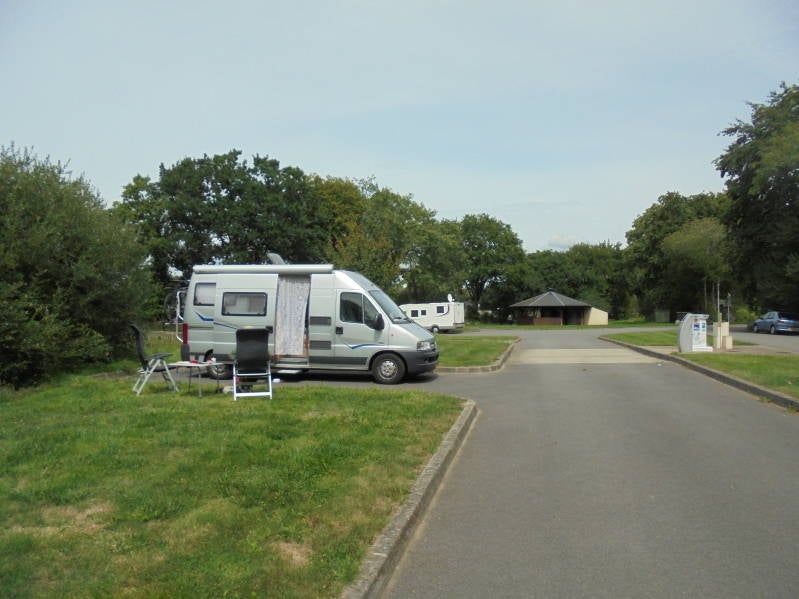 Chemin Gue Rapeau. 2 x bij ingang camping. Krap. Maar parkeerplekje kan ook.Servicepunt incl. loosput. 3 euro echter niets hoeven betalen,receptioniste zei dat het niet nodig was.