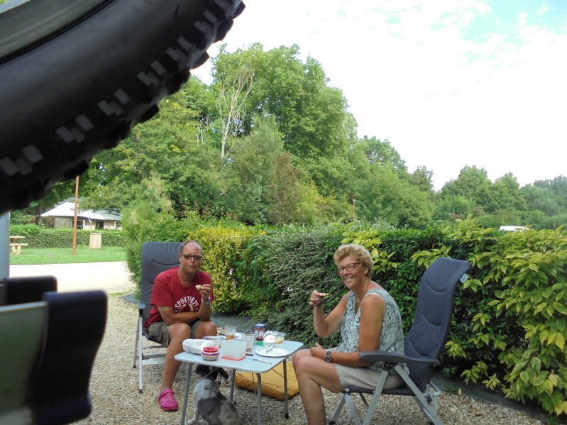 Lekker kunnen douchen,kleding wassen en niksdoen. Lekker uit eten geweest in het restaurantje bij de camping. Volgende dag richting de Dordogne gereden. Onderweg gegeten op een Aire de picknick midden in een dorpje...Parking voor autos en campers,met picknickbanken onder de bomen.Openbaar toilet gebouw. Prima!!