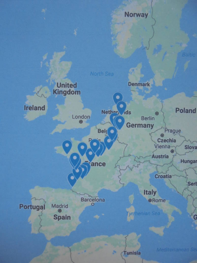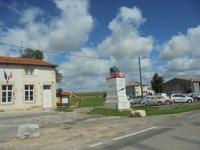 Inmiddels droog...dus de volgende morgen verder richting het noorden.Door de champagne-Ardennen richting Verdun en Longyon. Hier veel WO 1 monumenten,memorials en beelden langs de weg.
