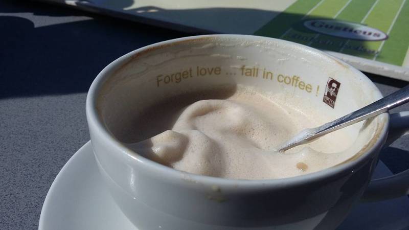 Maar onderweg toch nog even ergens een kopje cappuchino gedronken.... (Forget Love, fall in coffee )