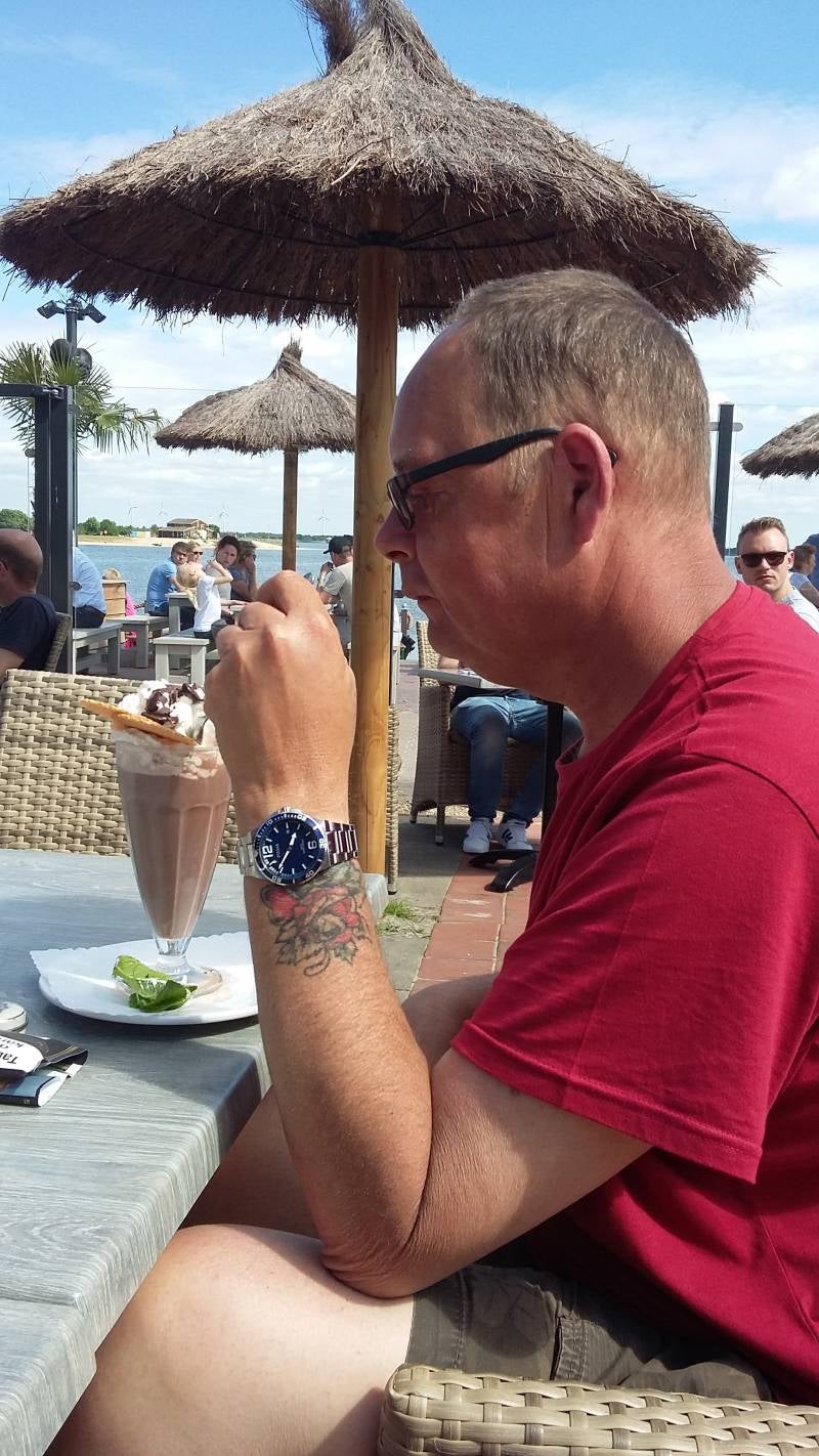 De giraffe langs de snelweg,stond net even buiten Emmen. Uiteraard als symbool van Wildlands,de nieuwe dierentuin van deze plaats.' S Middags even naar het water gelopen.Wat een mooi rekreatie gebied hier! Net buiten de cp een pad langs lopen,waarna we een heuvel op moesten.Zo kwamen we bij het restaurant aan het water. Hier heerlijk op het terras gezeten.