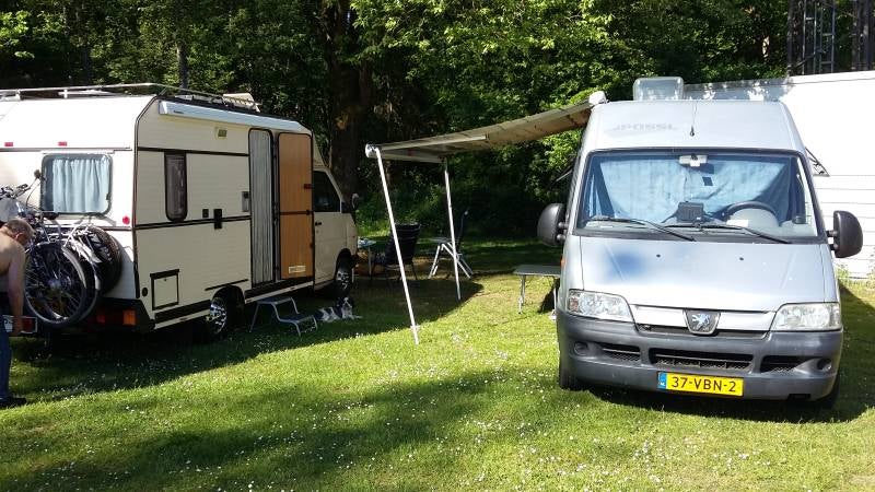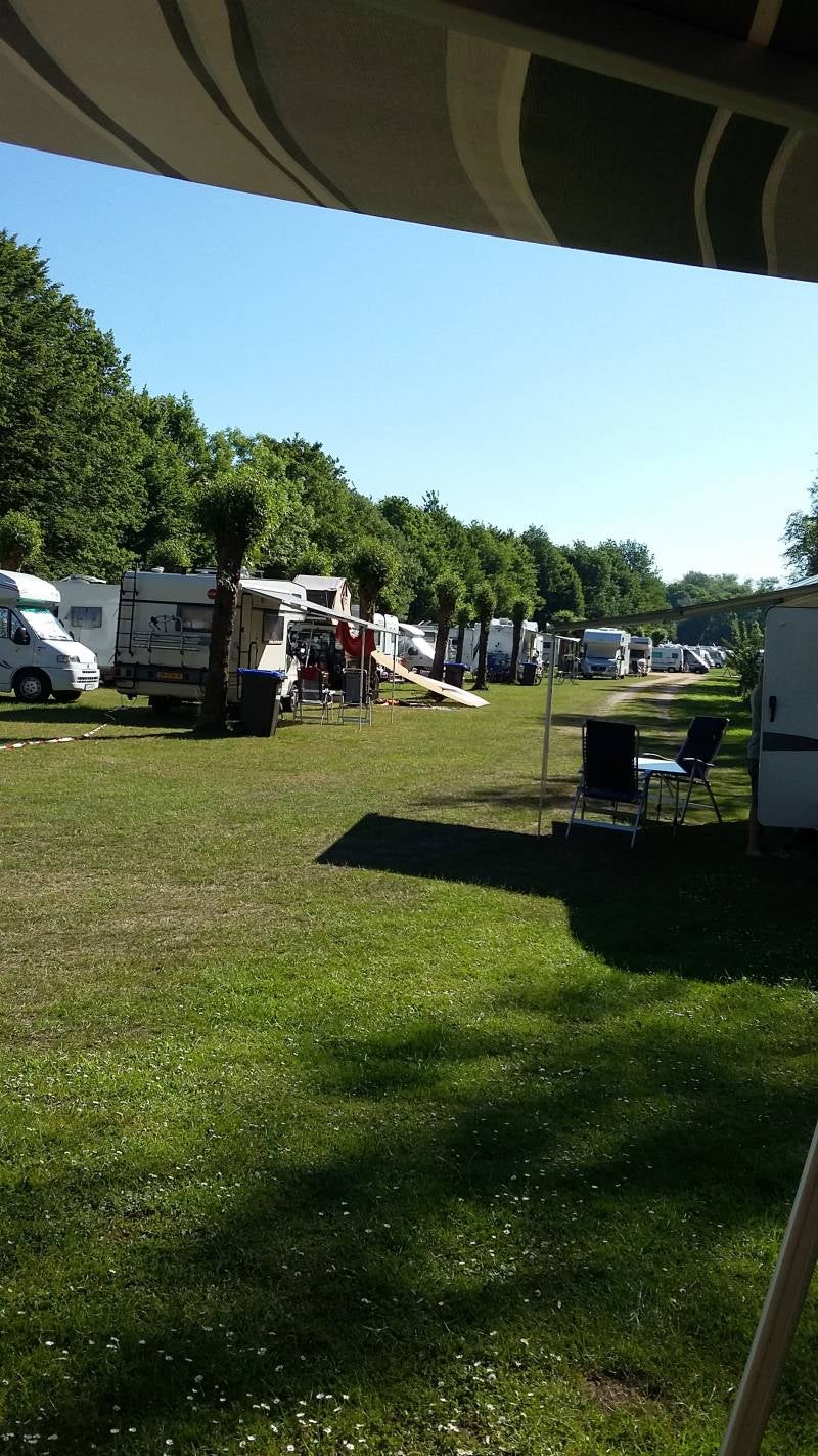 Best een grote CP ,verdeeld over 2 velden,uiteraard reden wij eerst verkeerd,er bleek nog een 3e veld open te zijn,soort van voetbalveld, waar niet veel campers stonden. Op de officiele CP stond het bijna vol,maar met voldoende ruimte voor iedereen.Wij hadden geluk ..ouders stonden er ook en in een hoek,tegen de bosrand aan,met grote boom! Heerlijk dus met deze temperaturen!