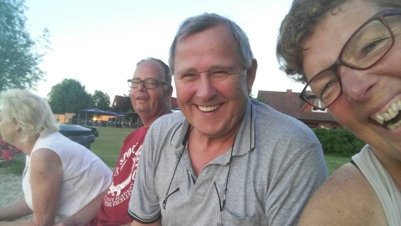 We vertrokken woensdagmiddag na het eten,via Emmen en het Duitse Meppen naar Geeste. CP Speicherbecken.(cp aan het zg spaarbekken,soort water reservoir met strandje,boten verhuur en leuk restaurant) We waren mooi optijd...later in de middag druppelde de cp aardig vol. Er was echter voldoende ruimte,ook op de parking voor auto's waar ook een aantal campers verspreid stonden. We werden verwelkomd door een spandoek dat aangaf dat er met hemelvaart een festival zou zijn... House am See...