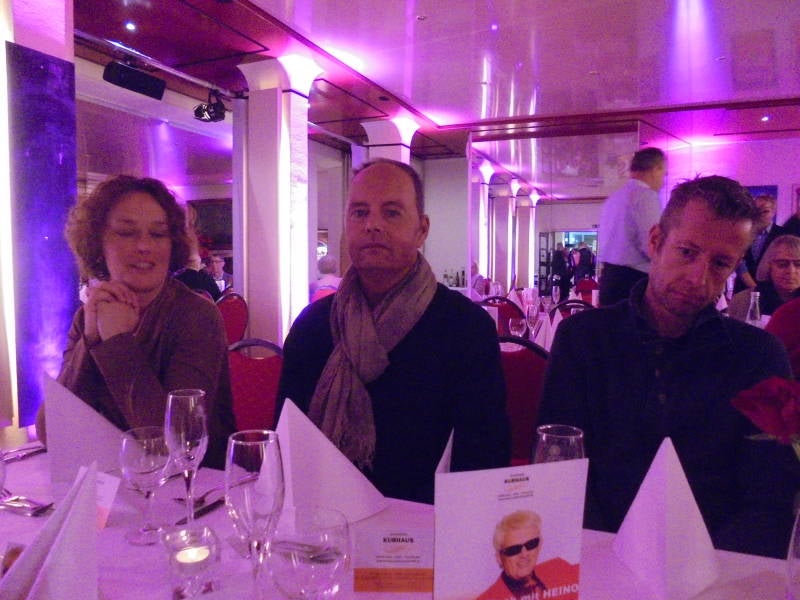 We konden alvast naar binnen,de zaal ging om 17.00 open,waar we gereserveerde plaatsen hadden. Eerst nog even bij de fanclub langs...Kerst cd van Heino gekocht. We kregen prima plaatsen, en hadden gezellige buren.Tussen de 4 gangen door trad Heino op. Super leuk! Tevens een liedje gezongen door zijn zoon Uwe, en ook kleinzoon (dat was mooi!!) Sebastian.Kerstliedjes, Schlagers en wat meer rocky...zelfs polonaise kwam voorbij.