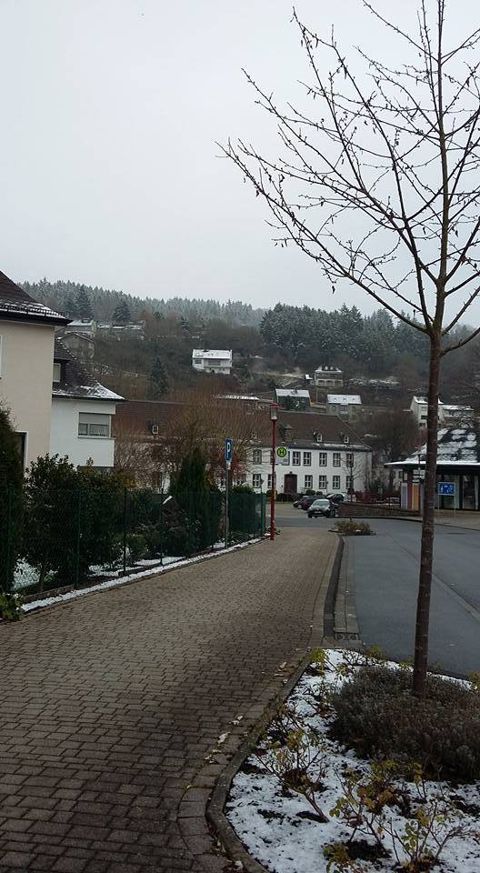 Vrijdag 1 december vertrokken wij met camper ....nadat we eerst vet ramen moesten krabben...moeilijker bij een camper vanwege de hoogte en er zat een gemeen laagje op. Nog even langs de supermarkt voor verse boodschappen en natuurlijk nog even tanken. Zo reden we tot aan Arnhem in pot dichte mist! Niks aan,want :heel weinig te zien. Vanaf Nijmegen werd het beter. Na lekkere cappuchino bij La Place Apeldoorn, en lunchen in de camper ergens in de buurt van Venlo, kwamen we s middags om 15.00 uur aan op de camperplek in Schleiden-Gemünd, waar we gereserveerd hadden. We kregen plaats nr. 21, recht tegenover het luxe verwarmde sanitair gebouw. Er stonden 3 campers toen we aankwamen, s avonds kwamen er nog een paar bij. Ons geinstalleerd, stroom aangesloten en de kachel aan...duurde maar even...het was gelijk lekker warm.