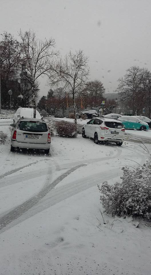 De volgende morgen lekker lang blijven liggen. Jeetje....meer sneeuw!! Gatsie...Lijkt mooi,maar ja...wij moeten vandaag naar Bad Münstereifel,dus dat betekent 27 km. rijden. En dan vanavond terug ,want we overnachten hier weer op deze camperplek.